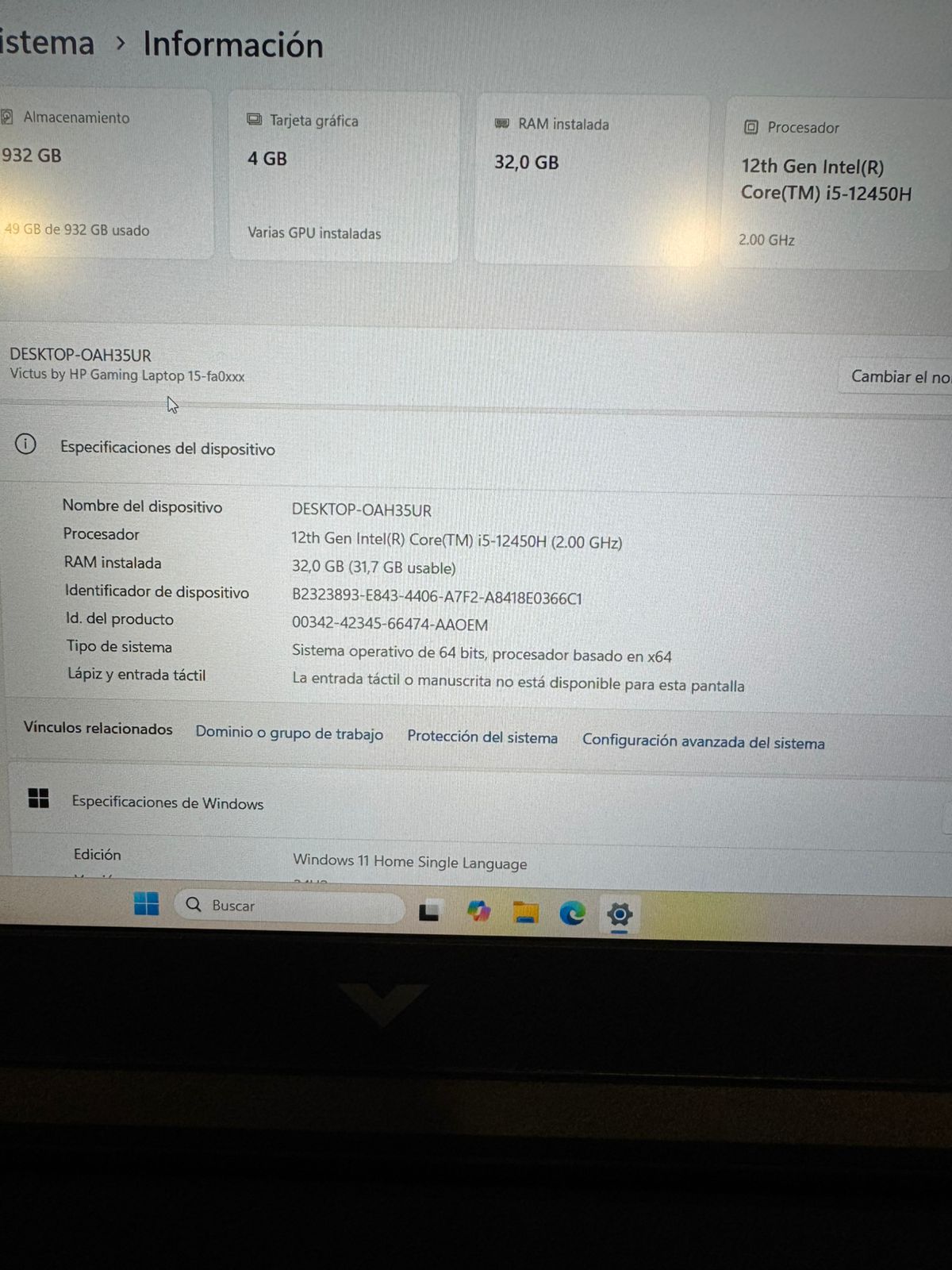 Hp Gaming Victus 15,6 pulgadas i5 12th 32gb ram, 1 Tb m2 NVIDIA 3050 RTX (Reacondicionado)