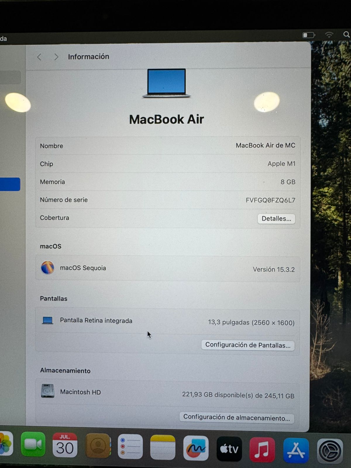 - Modelo Tarjeta de Video: Apple graphics M1 GPU 7 nucleos